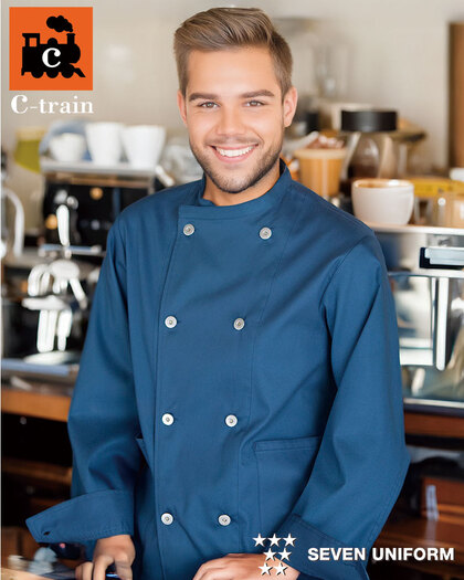 メタルボタンのアクセントに、Smokyな色使いのお洒落なコックコートです。袖口ボタン仕様、両腰ポケット付き。織物生地の《スティーリーコットン二重織》は、綿100%素材のウィークポイント①耐久性②色落ち③縮みを克服した素材。高級原料糸、超長綿を贅沢に使用、繊維の特性や、綿布の織り方、染め方を改良することで、丈夫で長持ち、強さと優しさを実現しています。制菌・制電・ストレッチ素材。