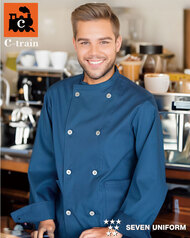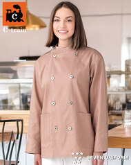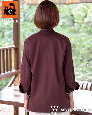 ワイドに広げた衿もとに、お洒落なくるみボタンの配列、さりげなく個性を主張するコックコートです。七分袖と背中プリーツが腕の動きを快適にサポートします。左胸ポケット付き。織物素材の《制電単糸ツイル》は、着用時の静電気を抑制する快適な綾織素材。肌触りと吸汗性にも優れていますSEK(橙)制菌加工・制電素材。