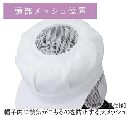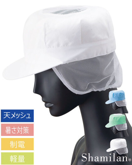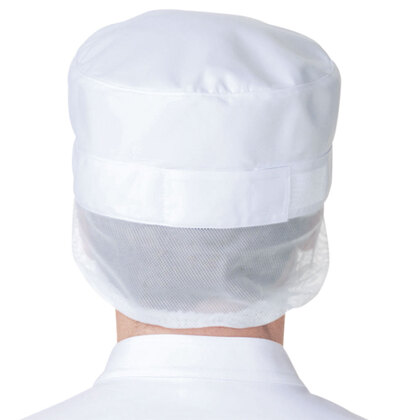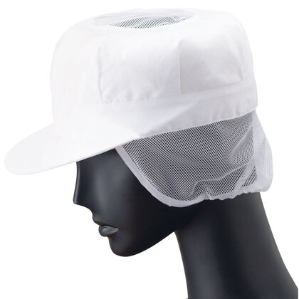 食品工場で使用されるCAPタイプの衛生帽子。着脱が簡単で、検品・運搬・配送などの幅広いさ禦環境にお勧め。毛髪落下を防止するメッシュケープなどの基本性能を備えています。