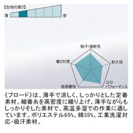 髪の毛が多めの方でも安心な大きめタイプの三角帽子。頭頂部はシャリ間のあるメッシュ素材を使用しています。《ブロード》は、薄手で涼しく、しっかりとした定番素材。細番糸を高密度に織り上げ、薄手ながらもしっかりそした素材で、高温多湿での作業に適しています。ポリエステル65%、綿35%。工業洗濯対応・吸汗素材。