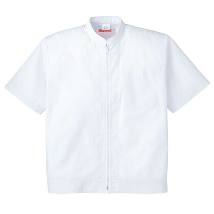 薄手で涼しく、しっかりとした綿混定番素材を使用した男性用衛生ジャンバーです。着丈の長いチュニックタイプ。常温環境から高温多湿での作業に適しています。裾脇ゴムなし、袖口ネット、左胸内ポケット付き(マジックテープ留め)。
