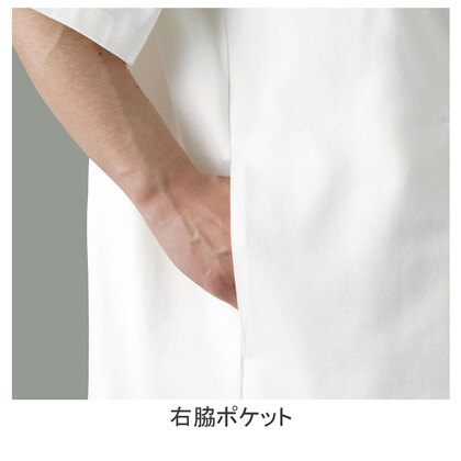 目をひく丸ボタンに、可愛らしいアクセントポケット。厨房でもホールでも自在に着こなす丸首コート。肘当てパッチも個性的です。織物生地の《スティーリーコットン二重織》は、①耐久性②色落ち③縮みを克服した素材。超長綿を贅沢に使用、繊維の特性や、綿布の織り方、染め方を改良することで、丈夫で長持ち、強さと優しさを実現しています。制菌・制電・ストレッチ素材。