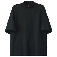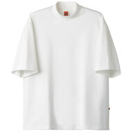 厚くしっかりしたジャージー生地のゆったりモックネックTシャツ。首回りは品格を保つ詰まったデザイン、生地は身体のラインを拾わない厚さなので、このシャツ1枚でのサービスが可能です。着丈は長めで背中が見えない安心設計。5分袖仕様、右脇ポケット(内ポケット付き)。ニット素材の《度詰天竺》は、目を詰めて編みこむことで、生地そのものの光沢が生まれ、高級感のある表情が楽しめます。綿100%。