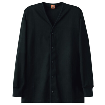 厚くしっかりしたジャージー生地のカーディガン。生地は身体のラインを拾わない厚さです。フロントドットボタン、両脇にポケット付き。ニット素材の《度詰天竺》は、通常のTシャツ素材と比べ生地に厚みがありしっかりとしたジャージー素材。目を詰めて編みこむことで、生地そのものの光沢が生まれ、高級感のある表情が楽しめます。綿100%。