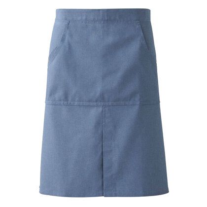 麻の様なドライタッチのミディアムエプロンです。お洒落な色合いに遊び心のあるディテール、フロントスリット入りで動きも楽な商品です。綾織素材の《麻調デニム》は、空気紡績という方法で糸を作ることにより、麻のような風合いと快適なドライタッチを実現した肌離れの良い素材。綿デニムのような色落ちや経年劣化もなく、シワのない綺麗な色合いが続きます。ストレッチ・制電素材。
