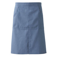 軽くて軽快、色落ちも少ないシンプルなデニムエプロン。飲食店に限らず、色々なシーンで使いまわせる万能タイプです♪ 動きやすいミディアム丈、腰ひも調整、フロントポケット付き。織物生地の《先染めデニム》は、ポリエステル65%、綿35%のデニム生地。通常のジーンズよりも薄手の生地で軽やかな着心地で、ポリエステル混紡のためお洗濯や経年劣化による退色も少なく、長く綺麗にご利用頂けるイージーケア素材。