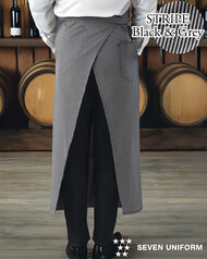 癖のない色、シックなブラック×グレーのストライプエプロンです。存在感のある縦縞ストライプで、生地感はしっかりとしたClassyな装いです。右腰ポケット(内:ペンポケット付き)、足さばきがらくなスリット入り。織物生地の《先染めストライプ》は、しっかりとした厚みがあり、生地の風合いは硬めで丈夫な綿リッチ素材。
