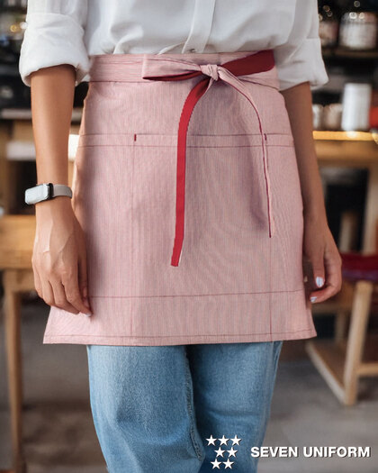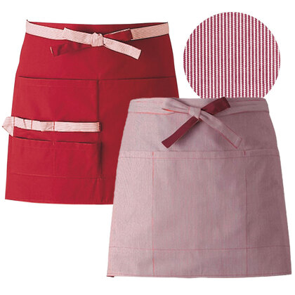 お洗濯によるシワや縮みもほとんどないことが特長のショートエプロンです。両腰マチ付きポケット、右後ループ付き。織物素材の《ギンガムチェック》は、洗濯によるシワや縮み型崩れがなく、ノープレスでも美しい抜群の形態安定性で工業洗濯にも対応。風合いも柔らかで優れた吸水性があり、洗濯を重ねても色あせがありません。また生地に付着した汚れが落ちやすく静電気も軽減するSR加工がされています。