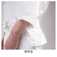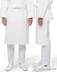 BASICな調理前掛です。丈夫で吸湿性に優れた葛城素材を使用しています。綾織素材の《カツラギ》は、丈夫で肉厚の綿100%素材。吸湿性と漂白効果性に優れたコックコートの定番素材。お洗濯後のシワ伸ばしにアイロンプレスが必要です。