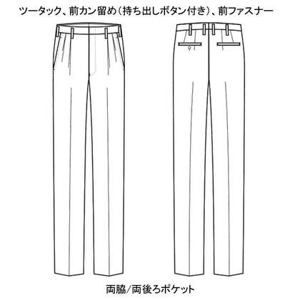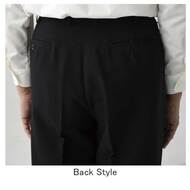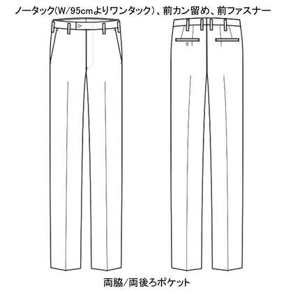 高級感と耐久性を両立させた、ウール調ギャバジンの男性用ストレッチパンツ。同生地のベストと合わせてもご利用頂けます。ノータック(W95㎝よりワンタック)、両脇/両後ろポケット付き。織物生地の《ギャバジン》は、見た目は高級トップ調梳毛素材ながらイージーケアのプレミアム素材。しっかりとした織目でも驚くほど柔らかく、伸縮性のあるストレスフリーな着心地です。ポリエステル100%。制電・ストレッチ素材。