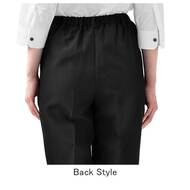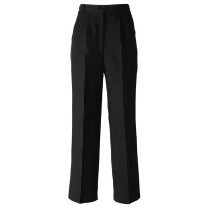 高級感と耐久性を両立させた、ウール調ギャバジンの女性用ストレッチパンツ。同生地のベストと合わせてもご利用頂けます。脇ゴム、ノータック、両脇ポケット付き。織物生地の《ギャバジン》は、見た目は高級トップ調梳毛素材ながらイージーケアのプレミアム素材。しっかりとした織目でも驚くほど柔らかく、伸縮性のあるストレスフリーな着心地です。ポリエステル100%。制電・ストレッチ素材。