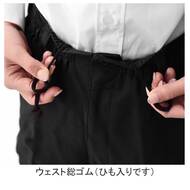 葛城綿100%、ウェスト後ろゴム、すっきり綺麗なシルエットの女性用調理パンツです。ウェスト後ろゴム、左横ファスナー留め、右後ポケット、裾上げ済み。綾織素材の《カツラギ》は、丈夫で肉厚な綿100%素材。吸湿性と漂白効果性にも優れます。抗菌防臭加工により、食中毒の原因となる黄色ブドウ球菌を抑制、また菌の増殖による悪臭も防止、洗濯を繰り返してもその効果が持続します。
