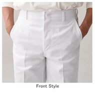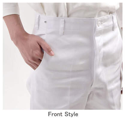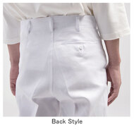 葛城綿100%、すっきり綺麗なシルエットの男性用調理パンツ。股上やや深め、ヒップはほのかにフィットする着用感です。ノータック(W95㎝以上はワンタック)、右後ポケット、裾上げ済み。綾織素材の《カツラギ》は、丈夫で肉厚な綿100%素材。吸湿性と漂白効果性にも優れます。抗菌防臭加工により、食中毒の原因となる黄色ブドウ球菌を抑制、また菌の増殖による悪臭も防止、洗濯を繰り返してもその効果が持続します。