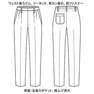 - :レディスノータックパンツ(脇ゴム入・股下フリー)