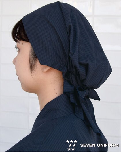 大きな三角形の生地をそのまま頭に巻き付けて着用する、軽量素材のバンダナキャップ♪ アイロンをしっかりあてるとサッカー調の風合いが無くなりますのでノーアイロンでのご使用がお勧めです。織物生地の《サッカー》は、生地表面に凹凸のシボがあり肌の接触面が少なく、通気性があり、べたつきの少ないのが特長です。綿高混率でストレッチの効いたソフトで窮屈感のない着用感、また洗濯耐久性にも優れています。