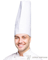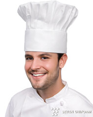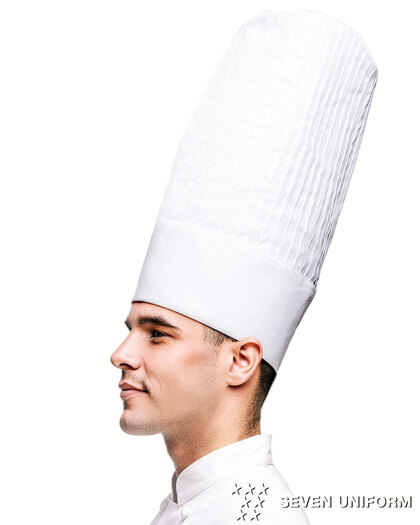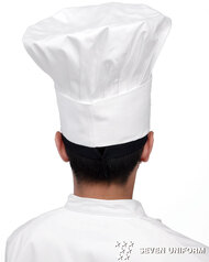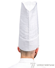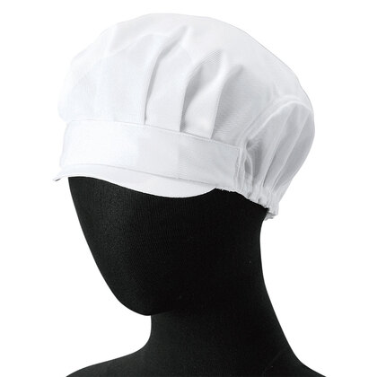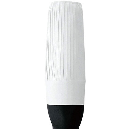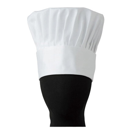 薄手で涼しい平織綿素材のコック帽。細かなプリーツ表現が美しく、丸天メッシュなのも特徴です。マチ幅10㎝、山丈30㎝、頭回り55~60㎝、プリーツ本数40本。織物生地の《細布》は、縦横ともに細い糸で平織りにしたハリのある綿織物。カツラギに比べて耐久性は劣りますが、薄手なので軽くて軽量、涼しい着用感が特長です。綿100%。