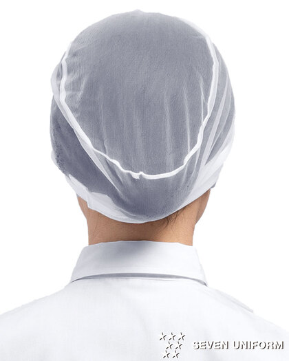 100枚セットの不織布ヘアネットです。単体でのご使用や、帽子や頭巾との併用により毛髪の混入を防止します。周囲総ゴム仕様。