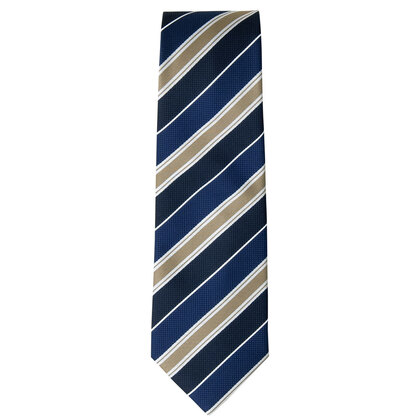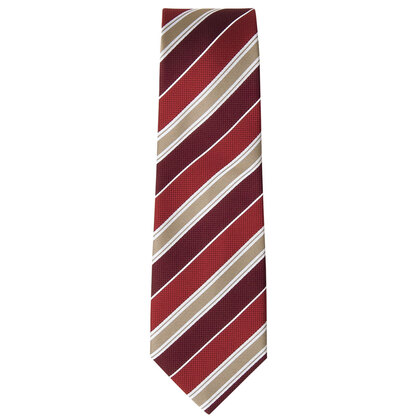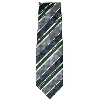 イギリスの伝統的な連隊旗縞をルーツに持つ「レジメンタル・ストライプ」柄のジャカードネクタイ。色使いと柄域がシンプルでシックなため、比較的誰にでも合わせやすく、様々なシーンで活躍します。耐久性に優れたポリエステル100%。