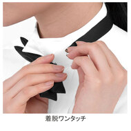 ドットボタン留め、サイズ調整も後ろDカンで簡単なクロスタイ。蝶タイを略したデザインで、パーティーやサービス現場など華やかなシーンでの着用におすすめです。サテン織りによる上品な光沢が、本物のシルクのような高級感を演出します。ポリエステル100%素材のため扱いやすく、耐久性にも優れた商品。