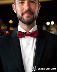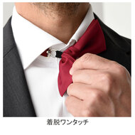 リボンの大きさ12.0×5.0㎝、セミバタフライ型で、軽やかに着けられる蝶ネクタイ。サテン織りによる上品な光沢が、本物のシルクのような高級感を演出します。ポリエステル100%素材のため扱いやすく、耐久性にも優れた商品。
