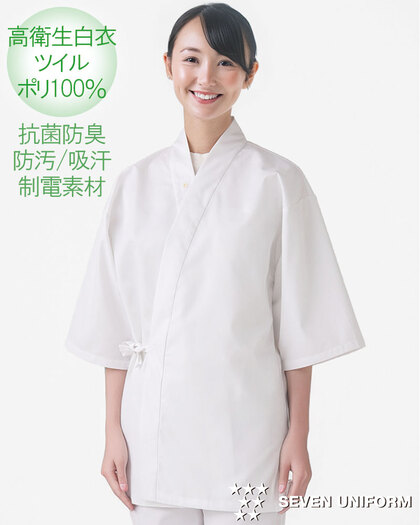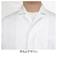 SR加工による防汚性能&綿のような心地よい風合い、開襟衿の高衛生白衣です。和コートの6分袖タイプ、袖口はネット付きで体毛などの異物混入を防止します。ポケットなし。織物素材の《ツイル》は、耐久性に優れた綾織物。糸の撚り方で綿に近い風合いを実現し、ピリングも抑制。ポリエステル100%、抗菌防臭・制電・SR加工(優れた親水性で汚れを簡単に除去出来ます)。