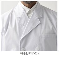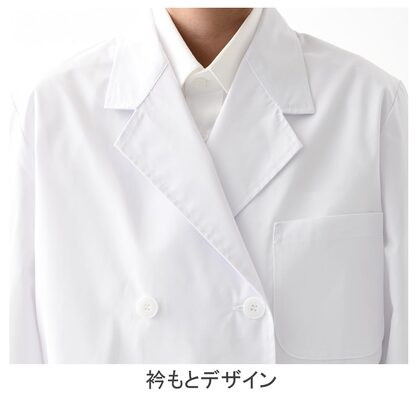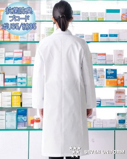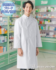 食品から実験、薬剤師さんまでご利用頂ける男性用長袖白衣です。左胸/両腰ポケット、袖口共布ひも入り、後ろセンターベント仕様。織物生地の《ブロード》は、繊細な横畝が特長の平織物。ポリエステル65%、綿35%。抗菌防臭加工により、食中毒の原因となる黄色ブドウ球菌を抑制、また菌の増殖による悪臭も防止、洗濯を繰り返してもその効果が持続します。