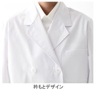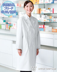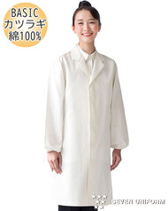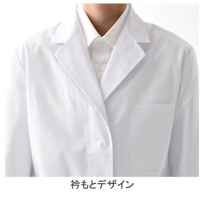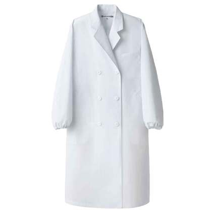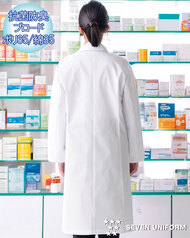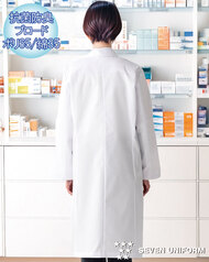 食品から実験、薬剤師さんまでご利用頂ける女性用長袖白衣です。左胸/両腰ポケット、袖口共布ひも入り仕様。織物生地の《ブロード》は、繊細な横畝が特長の平織物。ポリエステル65%、綿35%。抗菌防臭加工により、食中毒の原因となる黄色ブドウ球菌を抑制、また菌の増殖による悪臭も防止、洗濯を繰り返してもその効果が持続します。