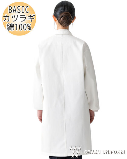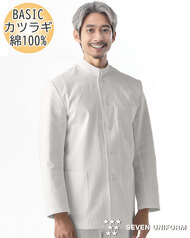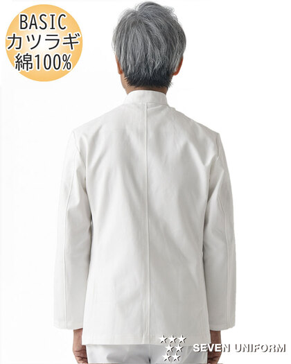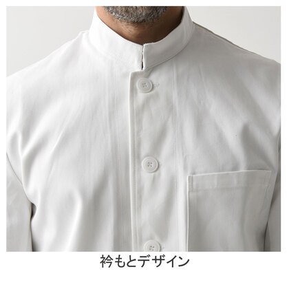 コットン100%の丈夫な生地を使用したシングルボタンコート。スタンドカラーのスッキリとしたデザインで、和洋中を選ばずご利用頂けます。左胸/両腰ポケット付き。織物素材の《カツラギ》は、綿100%の厚手生地で繰り返しの洗濯に強く、吸汗性に優れています。縦糸の密度が高く、綾目のある表情が特徴のスタンダード素材。