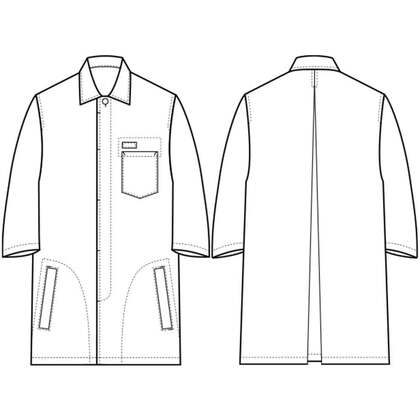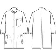 一番上のボタンを小さな組ひもボタン、その他をすっきりとした比翼ボタンにしたデザインコート。丈夫な中厚生地で、キッチンからフロアーまでマルチにご利用頂けます。左袖ポケット、両裾スリット入り。織物素材の《ツイル》は、耐久性に優れた綾組織の素材。ハリとコシのあるコックコートの定番素材。シワになりにくく、扱いやすいイージーケア素材です。ポリエステル65%、綿35%。