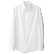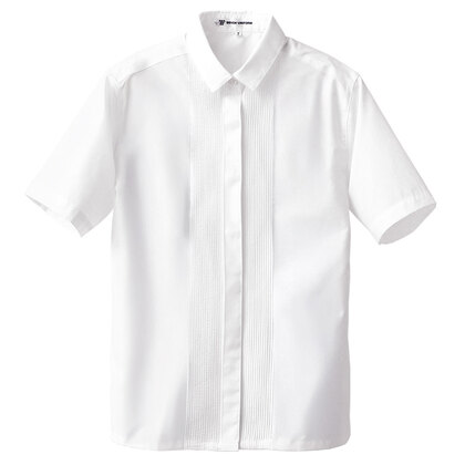 比翼の前立てに沿って裾までプリーツがある男性用のウィングカラーシャツです。タキシードやジャケットと合わせてフォーマルなシーンでのご利用がお勧め。衿後ろ蝶タイループ、織物生地の《ブロード》は、繊細な横畝が特徴の平織物。通気性と耐久性にも優れた素材。