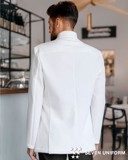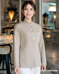 セブンユニフォームのスーツは、ホテルやレストランなど接客現場に映えるフォーマルユニフォーム。ジャケット・パンツ・ベスト・サービングコートまで豊富にラインナップし、上質な素材感と快適な着心地で清潔感と信頼感を演出します。