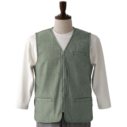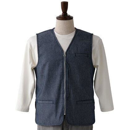 麻調デニムのストレッチVest