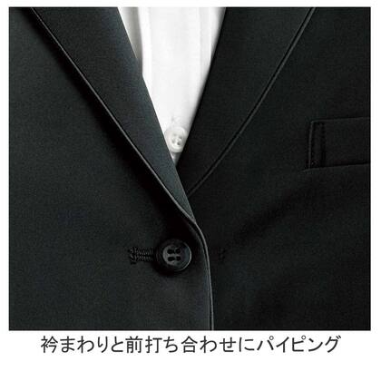 カシミヤ調の柔らかさとビロードのような光沢を持つ高級ドスキン織りで仕立てた女性用ベスト。パイピング仕様で高級感があり、着心地もしっかりとした商品です。ギャルソンのスタイルをイメージしたデザインで、このベストを主役にしたコーディネートがおすすめ。総裏、ウェストに2段の多機能ポケット、背中調整ベルト付き。織物素材の《カシミアドスキン》は、微起毛で上質感のある風合いとしなやかな肌ざわりの高級素材。