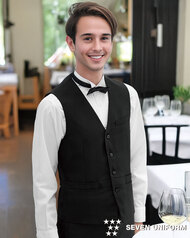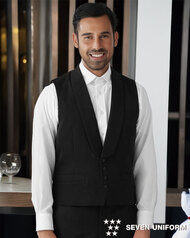 セブンユニフォームのスーツは、ホテルやレストランなど接客現場に映えるフォーマルユニフォーム。ジャケット・パンツ・ベスト・サービングコートまで豊富にラインナップし、上質な素材感と快適な着心地で清潔感と信頼感を演出します。