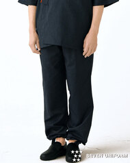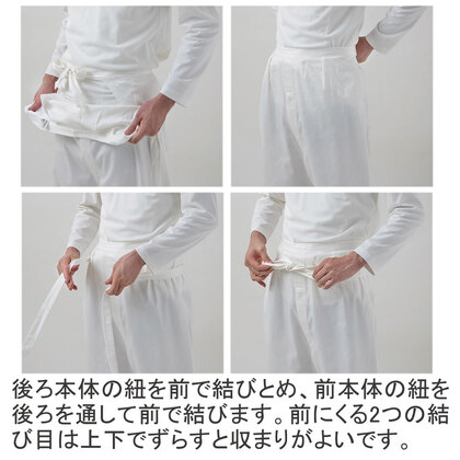 腰の両サイドが開く本格派の作務衣パンツです。右脇ポケット袋付き。織物素材の《カツラギ》は、綿100%の厚手生地で繰り返しの洗濯に強く、吸汗性に優れています。縦糸の密度が高く、綾目のある表情が特徴のスタンダード素材。