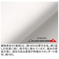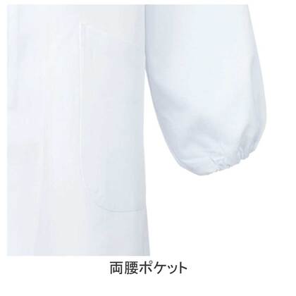 着丈が13~15㎝長め、カツラギ素材を使用した調理衣です。左内ポケット、両腰ポケット、袖口ゴム入り。織物素材の《葛城》は、綿100%の厚手生地。繰り返しの洗濯に強く、吸汗性に優れています。縦糸の密度が高く、綾目のある表情が特徴のスタンダード素材。