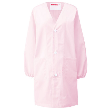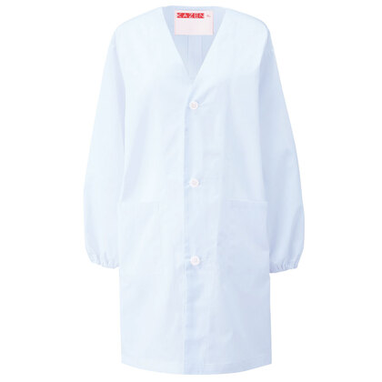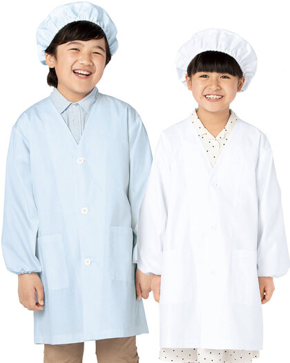 病原性大腸菌《O-157》やサルモネラ菌など、目に見えない有害雑菌の増殖を抑制する制菌加工がしっかりされた給食衣です。前ボタン留めのシングルタイプ。袖口はゴム取り換え口が付いています。