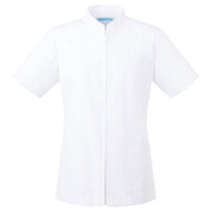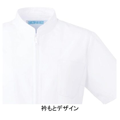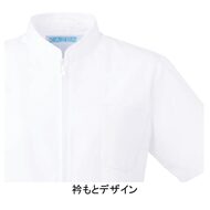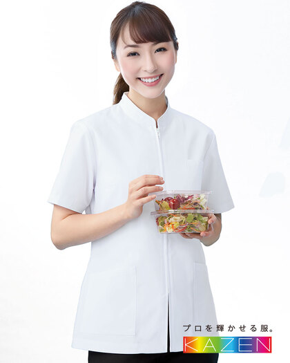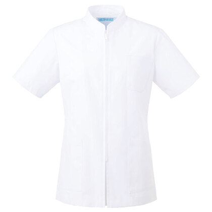 きっちりとした立ち衿に、フロントZIPですっきりとした女性用調理衣です。胸/両腰ポケット付き。織物素材の《ポプリン》は、表面になめらかな光沢があり、肌触りの良い素材。綿混紡素材でも洗濯後の縮みやシワを抑制する防縮加工に、ついた汚れが落ちやすい防汚加工もされています。(生地厚:★★☆☆☆)