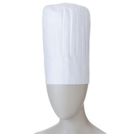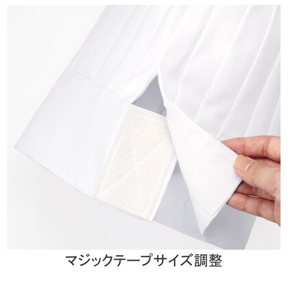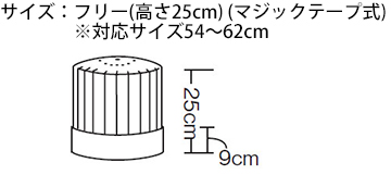 マジックテープでサイズ調整が可能な高さ25cmのコック帽です。天面に空気孔付き。織物素材の《シーティング》は、吸湿性とや通気性に優れた平織素材。耐久性と肌触りにも優れています。綿100%。