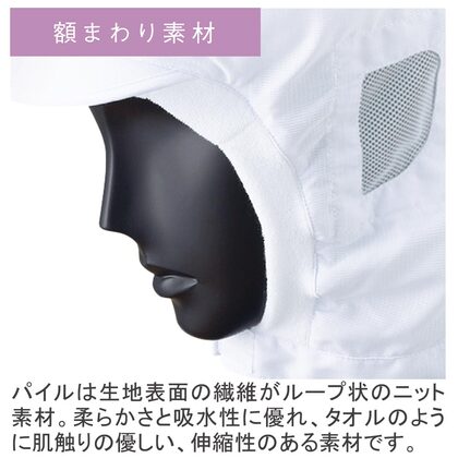 マスク掛けやメガネさしを省いた人気のショートフード。肌に触れるだけでヒンヤリ感のある本体のアクアクール素材をしています。ツバ/織芯、顔まわり素材/パイル、前マジックテープ、後ろ/マジックテープ、耳部/メッシュ(粗目)。