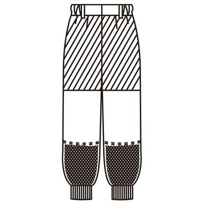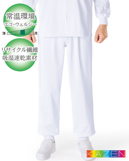 吸湿性と速乾性に優れたアセテートを肌側に、リサイクル繊維を外側に使用した常温環境向けの男性用ホッピングパンツです。ウェスト脇ゴム、ワンタック、ファスナーあり、右脇内ポケット、透け防止インナーメッシュ、裾口メッシュカバー&ホッピングフライス仕様。