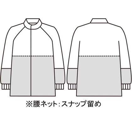 とにかく涼しい抜群の通気性に点接触、透け防止機能に加え、断熱・遮蔽機能まで備えた工場白衣。着丈長め&裾脇ゴムのないコートタイプです。作業効率を上げるSmooth-Fitの新次元の動きやすさと、ワンサイズで広範囲のサイズをカバーすることで在庫管理を大きく改善する商品。ラグラン袖、パイピング縫製、腰ネット(スナップ留め)、袖口ネット、ポケットなし仕様。ポリエステル100%。