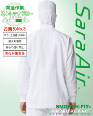 付着した汚れが落ちやすい、呼吸する快適素材で素肌のような心地よさ、帯電防止や透け防止の効果もある高機能。着丈長め&裾脇ゴムのないコートタイプです。作業効率を上げるSmooth-Fitの新次元の動きやすさと、ワンサイズで広範囲のサイズをカバーすることで在庫管理を大きく改善する商品です。ラグラン袖、パイピング縫製、腰ネット(スナップ留め)、袖口ネット、ポケットなし仕様。ポリエステル100%。