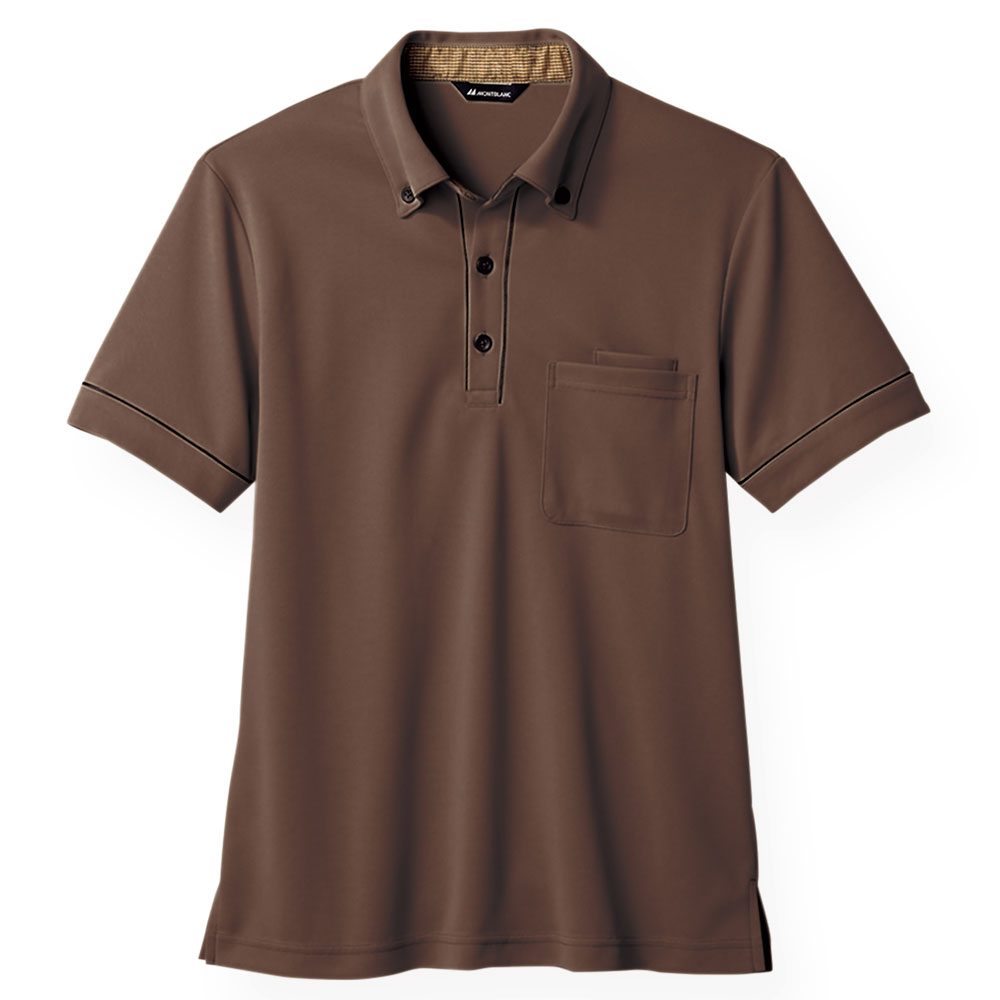 スキッパーカラーのボタンダウンがお洒落な、ちょっと贅沢なUnisexの半袖ポロシャツ。使用している生地や細部の丁寧な作りこみが特長です。左胸ポケット(内ポケット付き)、両裾スリット入り。ニット素材の《モイステック鹿の子》は、柔らかな肌触りと吸放湿性、吸水速乾性、UVケア性に優れた素材。ポリエステル90%、キュプラ10%。工業洗濯対応・制菌加工・透け防止・吸汗速乾。