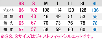 ※SSとSのレディースサイズはボディーラインをよりキレイに見せるジャストフィットシルエット仕様です。