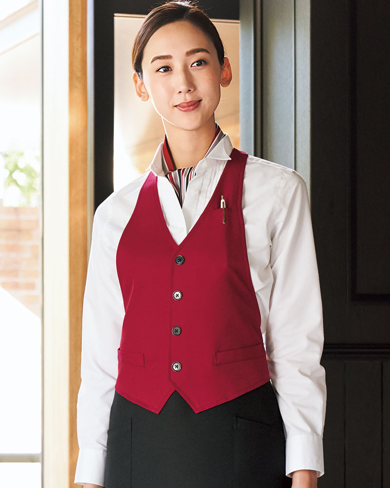 胸もとをピンタックが飾るLadiesウィングカラーシャツ。防シワ・防汚加工でアイロンなしでも綺麗に着用できる商品です♪ 綺麗なシルエットで、背中はシルエットを整えるダーツ入り。ポケットなし、衿後ろ蝶タイループ付き。織物素材の《ブロード》は、生地面に横畝がある高密度な平織り生地。しなやかな風合と優れた通気性、また洗濯にも強い定番素材です。ポリエステル80%、綿20%のイージーケア!