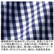 お店の雰囲気を明るくPOPに演出するチェック柄、男女兼用のボタンダウン半袖シャツです。織物素材の《先染めギンガム》は、染色した糸でチェック柄を織りなした、肌触りの良い平織素材。通気性と吸湿性に優れ、取り扱いも簡単なイージーケア素材。形態安定素材。
