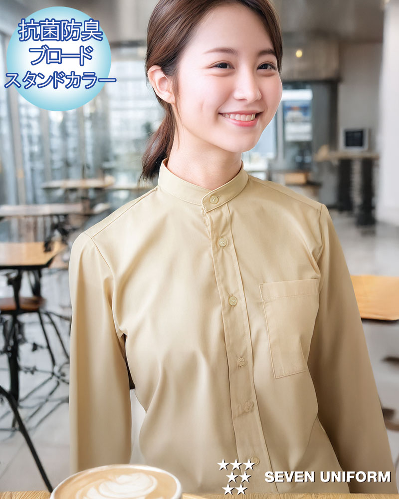 :長袖スタンドカラーシャツ