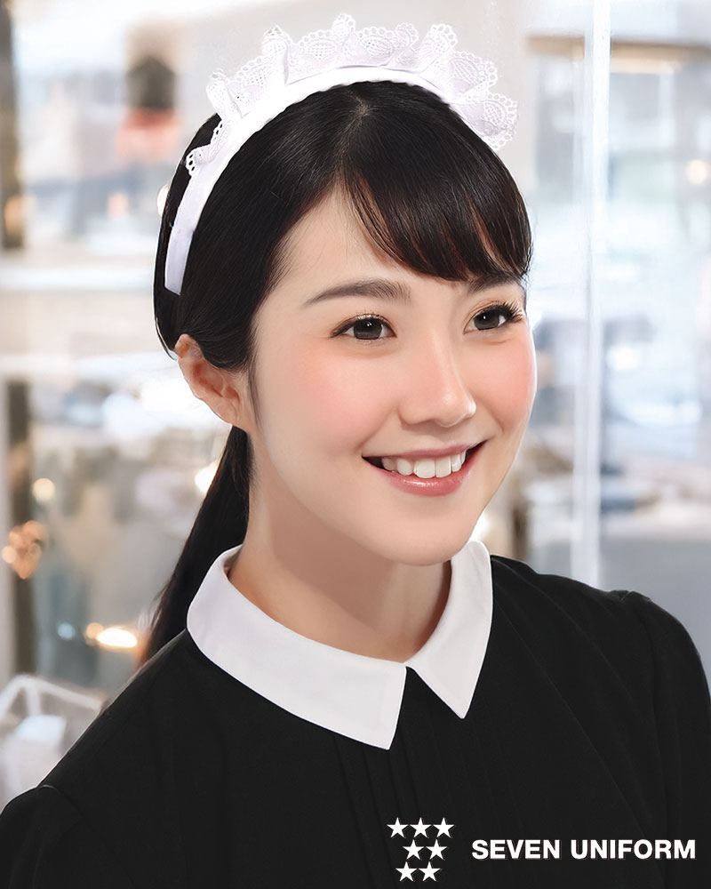 ハウスキーパー、レストランからアミューズメントまで幅広くご利用頂ける、取り外しが出来る布飾り付きのカチューシャです。※レースの仕様は写真と異なる場合がございます。※レースの生産の特性上、予告なく形状が変わる場合があります。