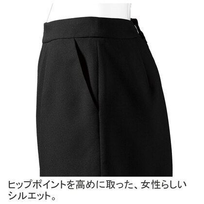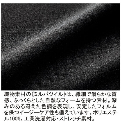素材の風合いを生かしたシンプルなデザインに、すっきりシルエット&ローライズのスタイリッシュなブラックスカートです。裏地付き、両脇ポケット付き。織物素材の《ミルパツイル》は、繊細で滑らかな質感、ふっくらとした自然なフォームを持つ素材。深みのある冴えた色調を表現し、安定したフォルムを保つイージーケア性も備えています。ポリエステル100%。工業洗濯対応・ストレッチ素材。